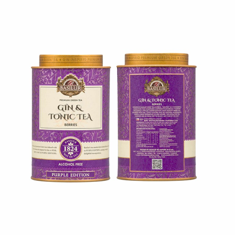 El Gin Tonic Berries Tea PURPLE refleja el compromiso de Basilur con la calidad superior, el diseño elegante y la innovación constante, ofreciendo una infusión que sorprende desde el primer sorbo.