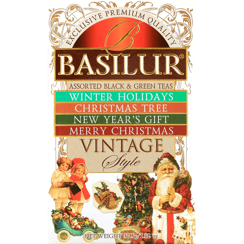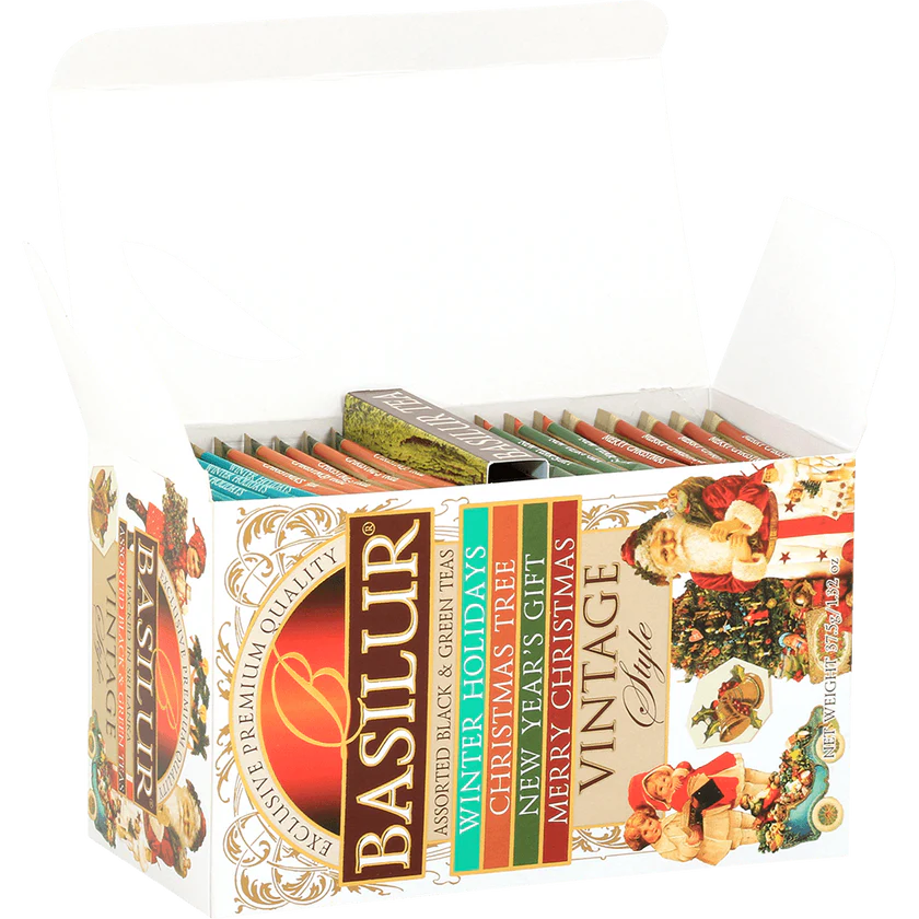 Este hermosa caja de té contiene 25 bolsitas de té de las variedades Winter Holidays, Merry Christmast, Christmast Tree y New Year Gift.